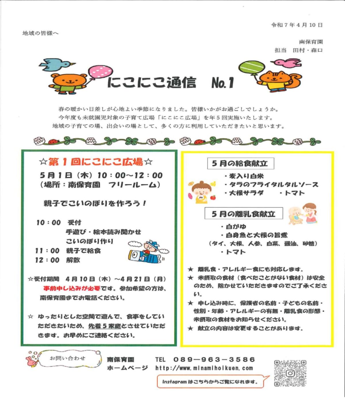 R7年度 第1回 にこにこ広場のご案内