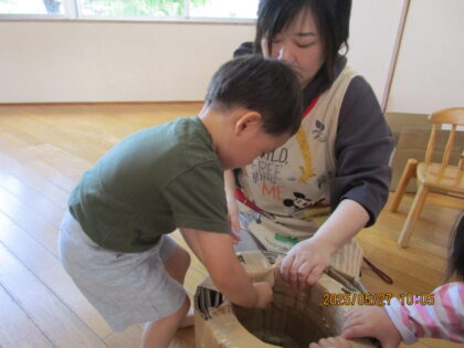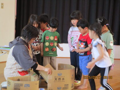 防災教室があり、3.4.5歳児が参加しました。「防災って何?」という所からみんなで考えて、地震や台風などの災害についてや、その怖さなど、災害の備えにはどうしたらいいのか?についても学ぶ事ができました。その後、段ボールを使って災害用トイレを作りました。興味津々で、みんなで仕上げました。最後にお家に帰ったら「お水と懐中電灯の用意をする事。」「みんなの命を守るために、今後の避難訓練にも真剣に取り組む事。」のお約束をしました。