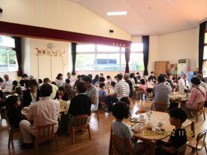 今日は、給食も一緒に食べることができてうれしそうなぞう組さん。お家では残してしまう苦手な物もしっかり食べて、おじいちゃん、おばあちゃんはびっくりしていました。