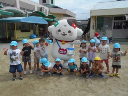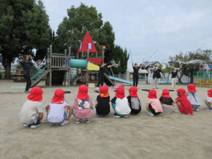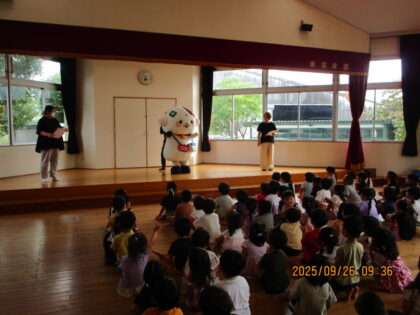今回は、たんぽぽの会の役員さん主催で3・4・5歳児がしゃぼん玉あそびをしました。ホールで「みるぽん」と一緒にしゃぼん玉にちなんだクイズを楽しんだ後、園庭でしゃぼん玉あそびをしました。