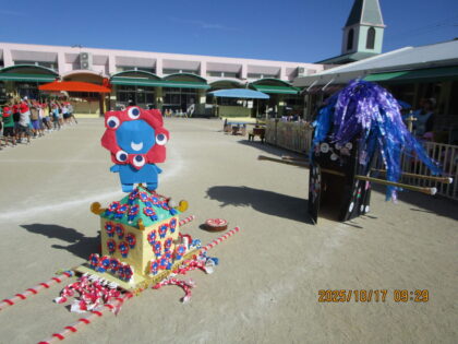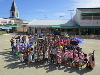 3・4・5歳児の各クラスで作ったお神輿を園庭に持ち寄り、