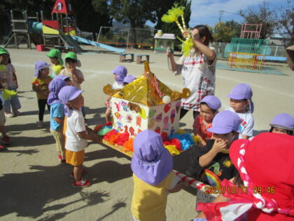 0・1・2歳児クラスの子たちも手拍子をしたりお神輿を触ったりと