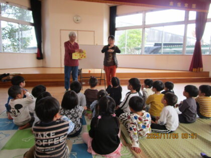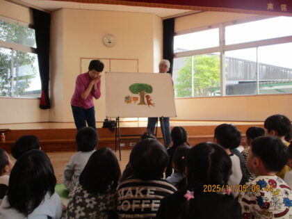 2025.11.15 日々のブログ11月5日 お話しの会(3歳児) 秋の植物や果物がたくさん出てくるお話をたくさん見せていただきました。 初めて見たり、聞いたりした植物の名前を教えてもらい興味深々でした。