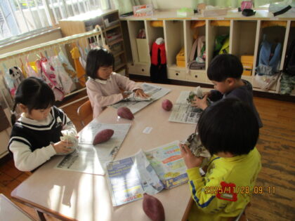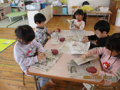 今月のわくわくタイムは焼き芋パーティーをしました。