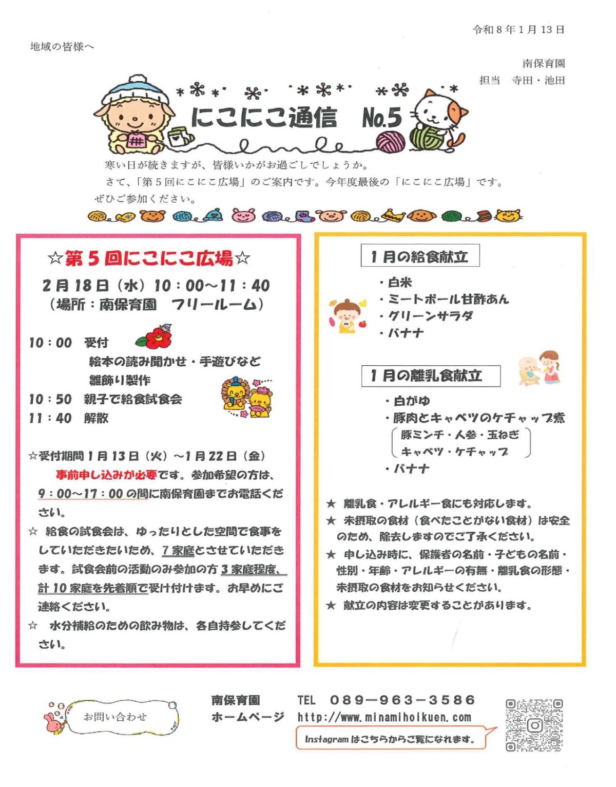 「第5回にこにこ広場」のご案内です。今年度最後の「にこにこ広場」です。ぜひご参加ください。お待ちしております。