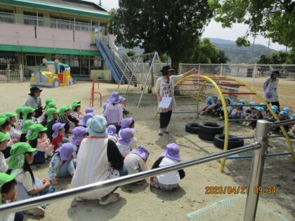 2026.4.25 日々のブログ4月21日 生活安全教室 今年度初めての生活安全教室を行いました。 4月の安全教室は室内・園庭での過ごし方、遊び方について学びました。 楽しく安全に遊ぶにはどうしたらいいのか、どのように使うかなどをみんなで考え、確認しました。