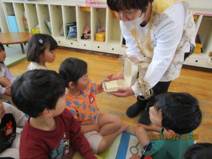 質問をしたり、感想を述べたり、年長児らしい姿が見られました。